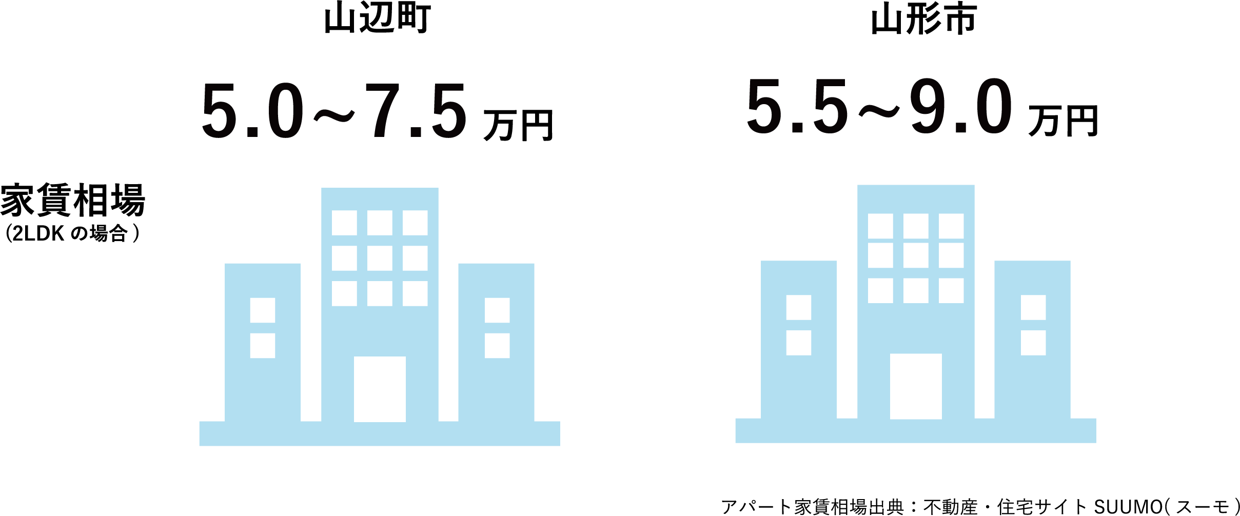 近隣市町村との家賃・地価を
